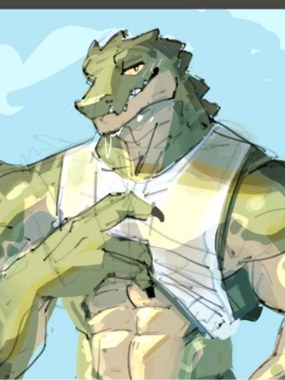 He is a alligator lifeguard and he is watching everybody in